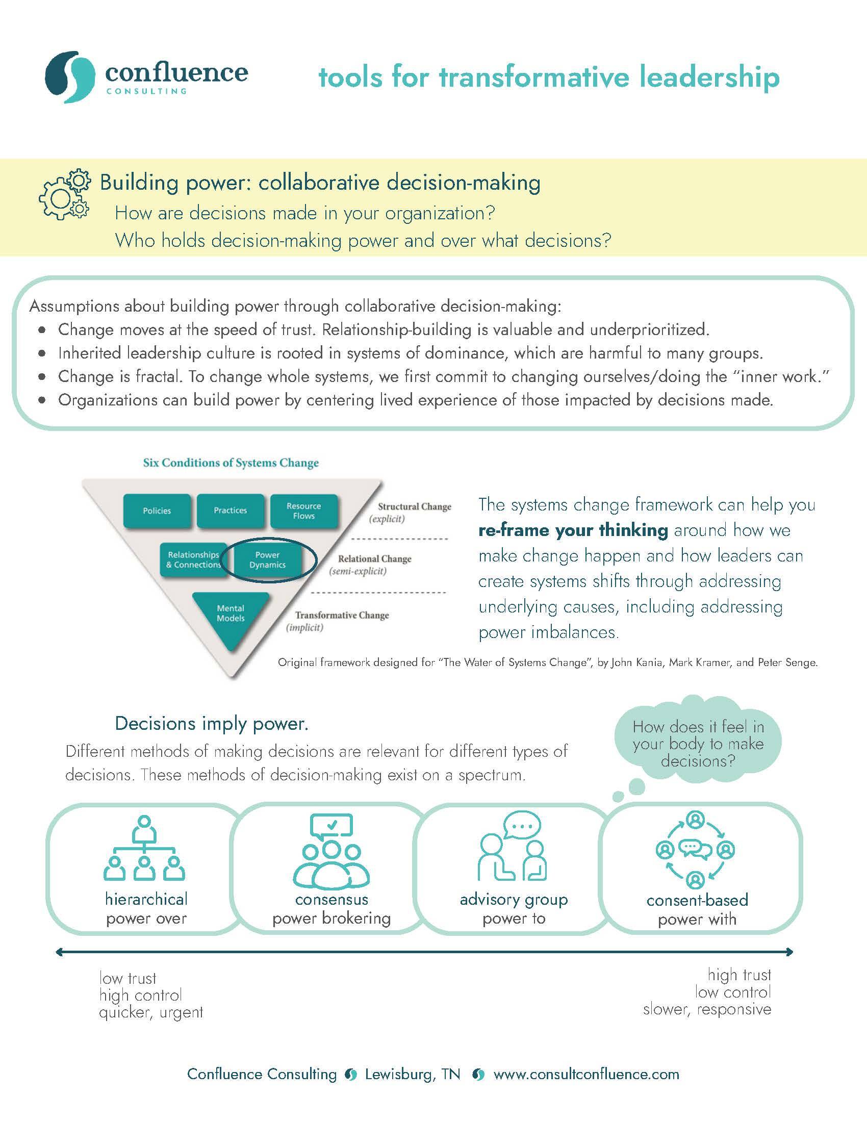 - the systems change framework for understanding why transformative leaders are addressing power imbalances and deepening connection, and